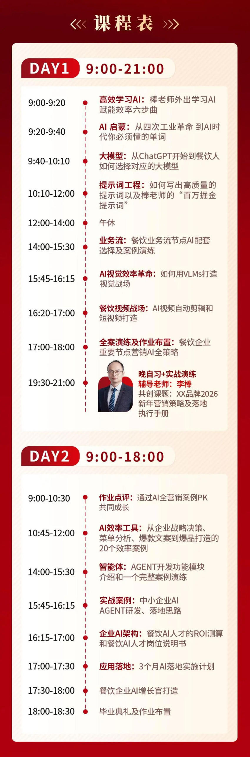 2026年餐飲競(jìng)爭(zhēng)的核心是AI落地能力,這堂開(kāi)年第一課,讓你與全國(guó)頭部餐飲品牌同窗研學(xué),兩天掌握AI從工具到戰(zhàn)略的完整能力,將技術(shù)紅利轉(zhuǎn)化為品牌競(jìng)爭(zhēng)力。先人一步用AI重構(gòu)經(jīng)營(yíng),才能在新一輪競(jìng)爭(zhēng)中占據(jù)主動(dòng)、贏得未來(lái)!